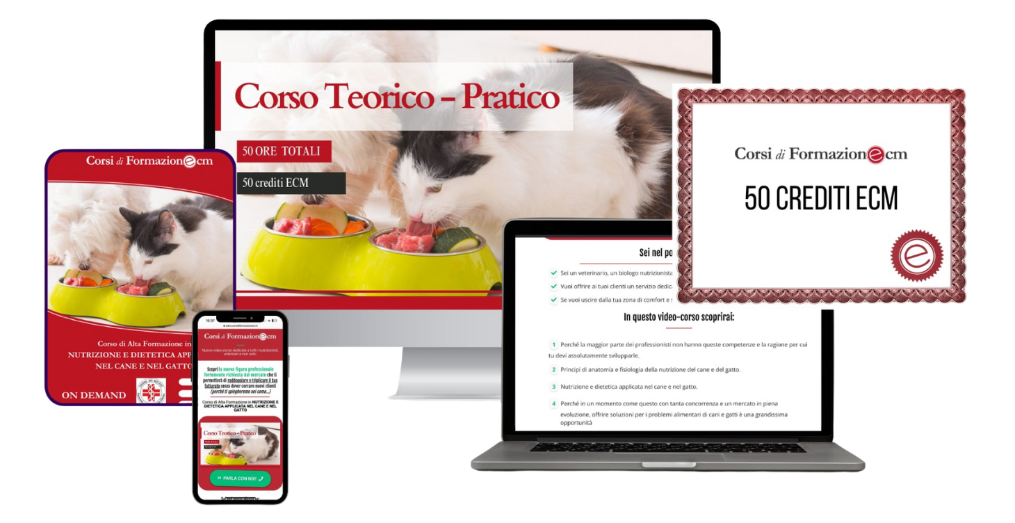 Uno di questi è proprio il corso di “Nutrizione e dietetica applicata del cane e del gatto” e “Alimentazione funzionale per patologia e Medicina di Laboratorio”